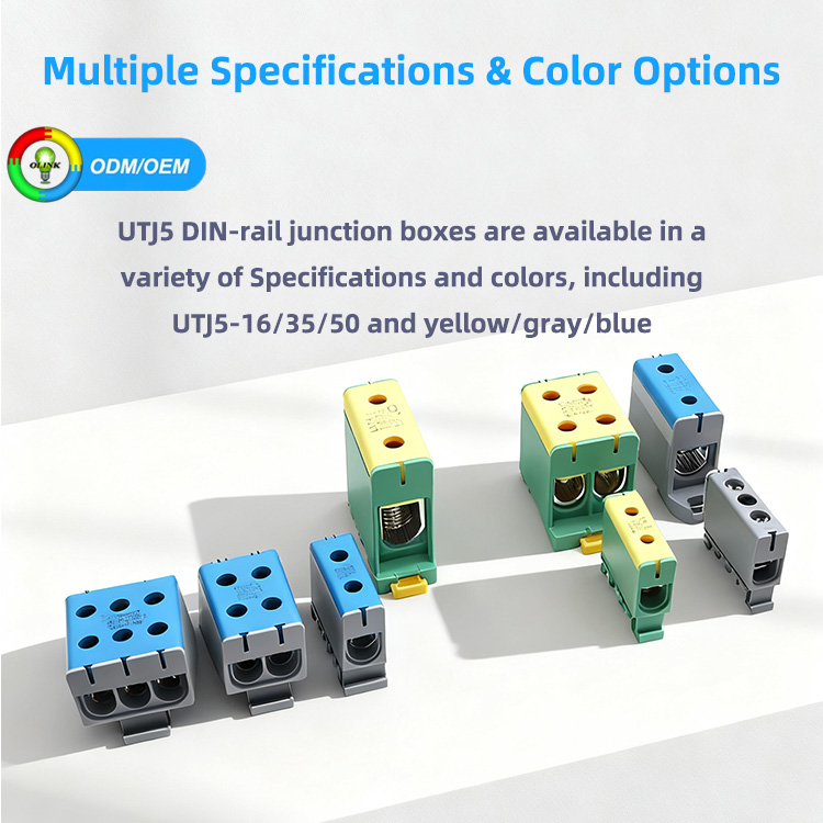 Промышленная винтовая клеммная колодка OLINK UTJ5 на DIN-рейку с алюминиевым контактом, 220 А, пластиковая шина