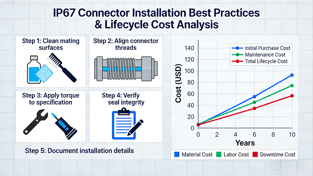 IP67 connectors carry a modest upfront premium—typically 20-30% more than standard unrated options—but deliver a 5-10x longer service life, drastically reducing replacement frequency and associated labor costs.