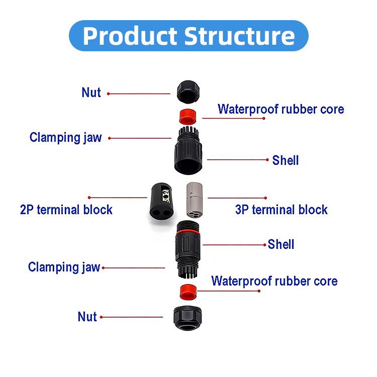 Используется для проводки водных объектов, таких как проводка бытовых аквариумов и т. Д., А также для водонепроницаемого и влагонепроницаемого освещения, такого как лампы и фонари. Наименование товара: Мини-водонепроницаемый разъем Модель продукта: CDF-M3 Количество ядер: 2P / 3P Наружный диаметр кабеля: φ4 - φ7 мм Номинальное напряжение: 300 В Номинальный ток: 16А Диапазон проводов: 0,5-2,5 мм² / 20-14 AWG Уровень водонепроницаемости: IP68 / глубина воды 4 м Материал контактов: Никелированная латунь Материал корпуса: Огнестойкий нейлон Рабочая Температура: -40 ℃ ~ 95 ℃ Способ подключения: Винт / Вдавить Заявка:
