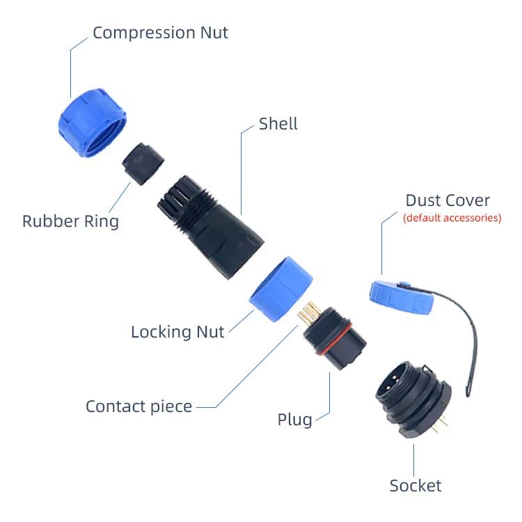 Водонепроницаемые штекерные соединители SD28 представляет собой крупногабаритный пластиковый корпус с водонепроницаемым разъемом IP68. Пользователь может прикрепить провода к разъему, затянув винт &.